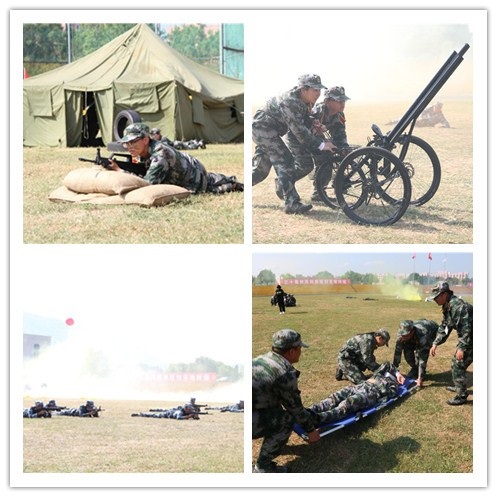 承担我校2017级新生军训科目的教官,均来自我校民兵应急连。该连队的骨干成员是42名退伍复学的预备役士官,他们除了学好课业外,日常定期开展训练,包括队列动作、排队列动作、战术基础动作。如今,这已成为我校国防教育的一大特色。