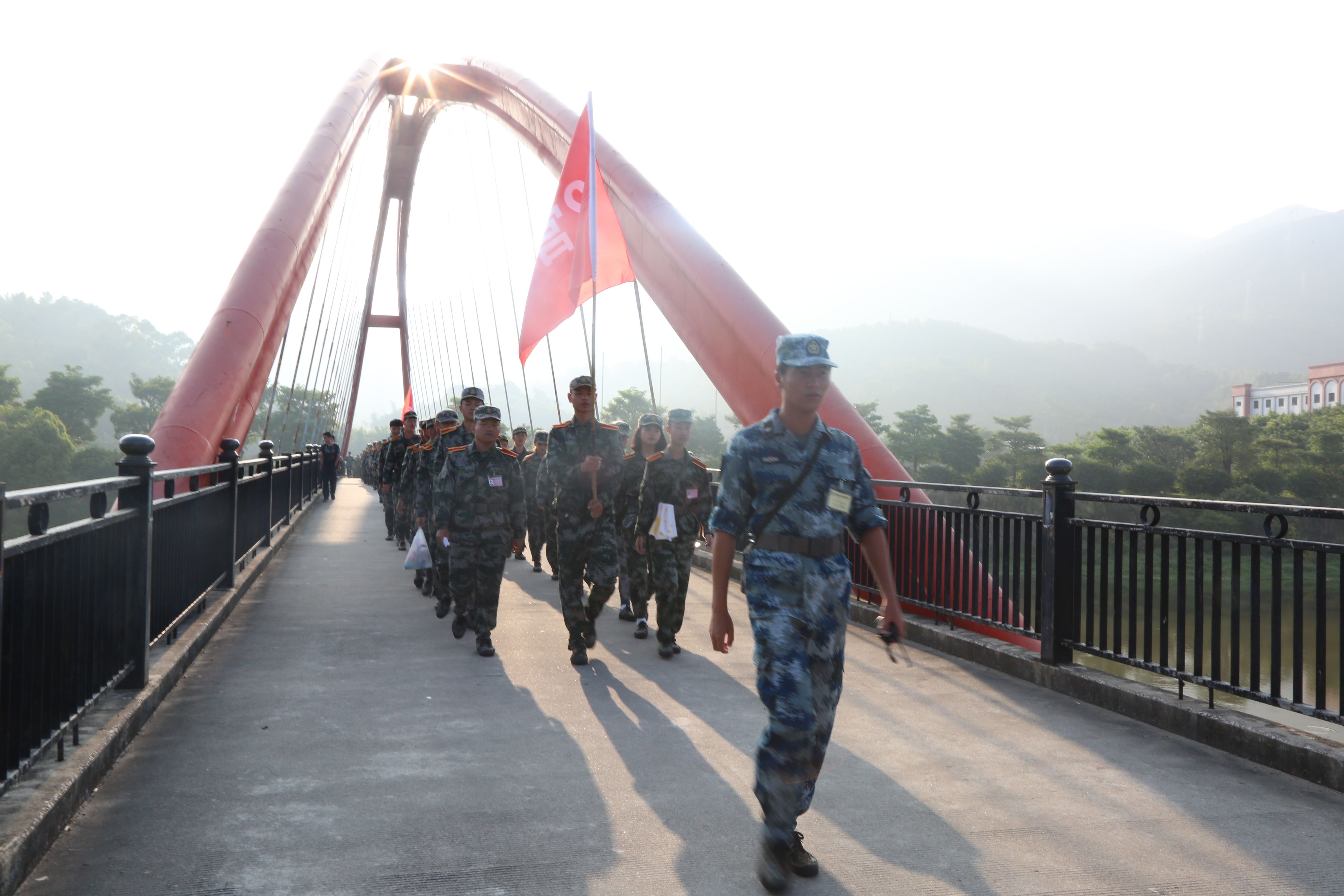 新生在教官的带领下分别从第一教学区和第三教学区的操场出发。此次行军拉练全程15公里,途经洋坑村、梅岭村、祈山村等多个地点,历时5个小时。校党委副书记程如平、校武装部部长薛军楼、学生事务部主任吴胜潮,以及各学院党总支书记、新生辅导员、班主任等陪同参加了本次拉练。
