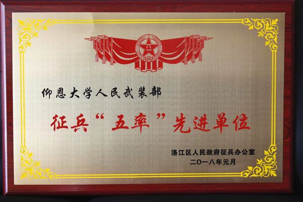 校武装部荣获征兵“五率”先进单位 为确保征兵“五率”(报名率、上站率、合格率、择优率、退兵率)指标最优化,我校采取了系列举措,一是进行谈心活动,与学生进行面对面交流,解决学生的疑惑和担忧;二是进行役前适应性训练,内容包括单兵队列、单兵战术、防毒面具的使用、体能训练和劳动;三是召开座谈会,退伍复学学生与新入伍学生进行交流,让新入伍学生提前了解部队生活情况;四是进行跟踪,学校选派人员赴部队对入伍学生进行慰问,了解他们在部队的表现和想法。