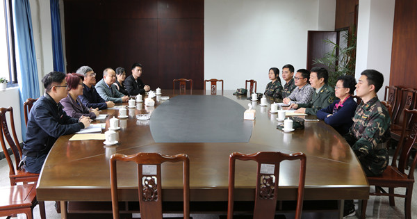 参观结束后,双方在第三教学区行政楼会议室举行座谈。薛军楼围绕军训工作、大学生征兵工作、《孙子兵法》课程教学、国防教育及国防后备力量建设等方面内容,着重从“加强制度建设,完善机构设置,夯实武装工作基础”“践行快乐军训,规范科学施训,确保军训取得实效”“统一思想,提高认识,增强做好学校征兵工作责任感使命感”“明确目标责任,营造良好氛围,开展卓有成效的征兵工作”“加强督促检查,确保学校征兵工作任务落到实处”等方面介绍了我校武装工作的做法及取得的成效。