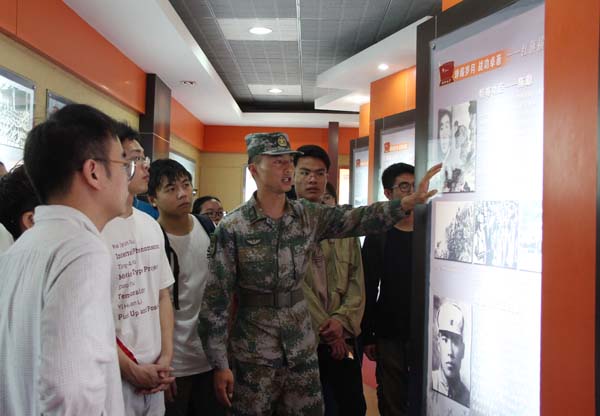 在红色尖刀连,解放军战士讲解员结合武器装备向师生们讲解了有关武器知识,带领师生们参观部队连史馆,观看中巴集训视频。通过参观学习,师生们了解了红色尖刀连“人在象山在”“九江抗洪”“红旗插上厦门岛”等光荣历史,更惊叹于红色尖刀连过往的光辉和当前的优秀。
