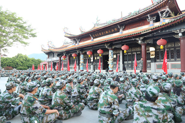 军训拉练途中,同学们以2人纵队为一行进排面,步伐整齐,秩序井然,山间田野回荡着他们整齐的口号和嘹亮的军歌。为了培养同学们团结协作、勇于克服困难的优良品质和良好的组织纪律性,拉练设置了多个预定训练项目。在项目演练中,新生们听从命令、服从指挥,训练有素地完成了防空演练、通过染毒地段,参观了民族英雄俞大猷纪念馆,聆听抗倭名将俞大猷的感人事迹,自觉接受爱国主义教育洗礼。