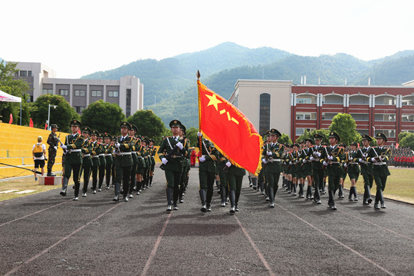 在军训大队政委薛军楼的陪同下,庄哲峰检阅了军训方阵。“同学们好!同学们辛苦了!”“为人民服务”新生们以积极向上的精神风貌,响亮整齐的口号,铿锵有力的步伐接受了校领导的检阅。