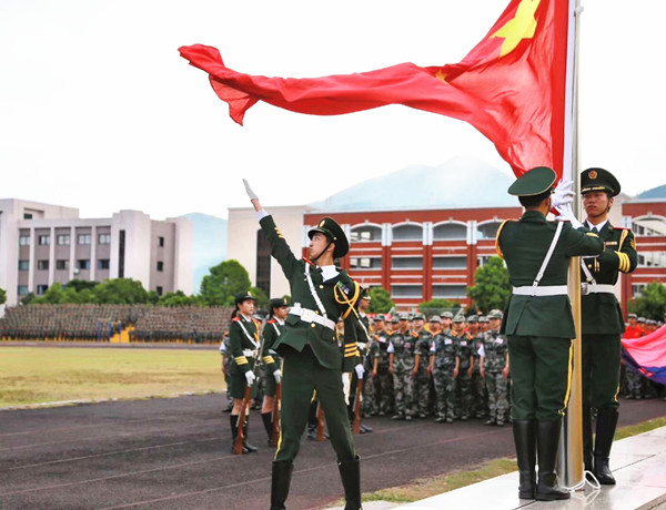 上午9时整,隆重的升国旗仪式拉开了考核的序幕。