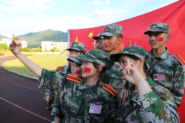 期间,我校还组织学生观摩“国防建设成就”主题展板,了解国防知识,树立国防意识。同时,新生们和教官自发与国旗合影,表达了对祖国的热爱与祝福之情。