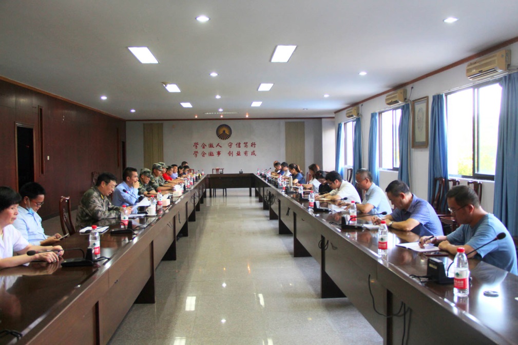 9月15日下午,我校在第三教学区行政楼召开2020级新生军训工作协调会,对即将开展的新生军训工作进行协调部署。校军训工作领导小组组长、校党委副书记程如平,承训部队管理科科长、校军训大队大队长郑渊,校武装部部长薛军楼,军训工作领导小组成员、承训部队官兵等参加会议。