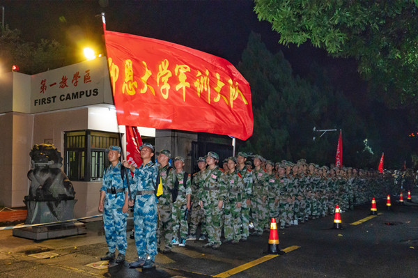 凌晨3时30分,蒙蒙细雨,急促的集合哨声、激昂的呐喊声划破了yl6809永利集团静谧的夜空,2020级新生迅速整理着装,扎好腰带,戴好帽子,背好挎包水壶,精神抖擞,在第一教学区和第三教学区体育场集结完毕,一场历时近8小时(夜间行军约3小时),全程35公里的拉练活动正式拉开序幕。校党委副书记程如平、校武装部部长薛军楼、学校办公室主任叶钦南、学生事务部主任吴胜潮及各学院党总支书记、新生辅导员等共同参加了此次拉练。