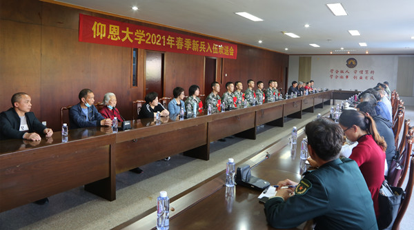 3月15日下午,我校在第三教学区行政楼会议室举行2021年春季新兵入伍欢送会。校征兵工作领导小组成员、从学校所在地应征入伍学生及其家长代表等参加欢送会。