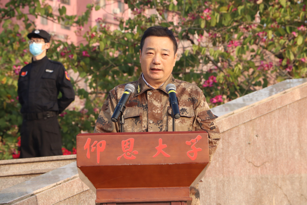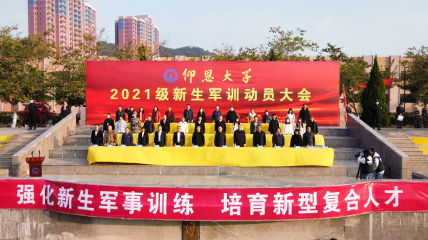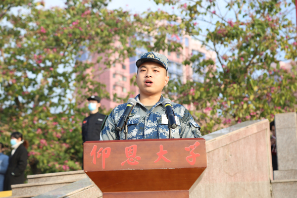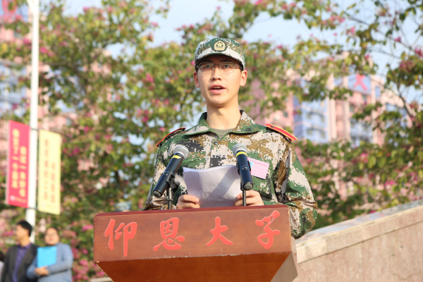 2021级新生代表许林杰在发言中表示,将以军人的标准严格要求自己,一切行动听指挥,遵守军训纪律,树立团结奋斗的观念,锻炼强健体魄,增强精神意志,做意气风发的仰恩人和担当民族复兴大任的时代新人。
