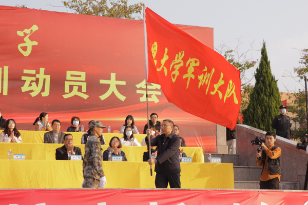 许总为新生军训大队授队旗。