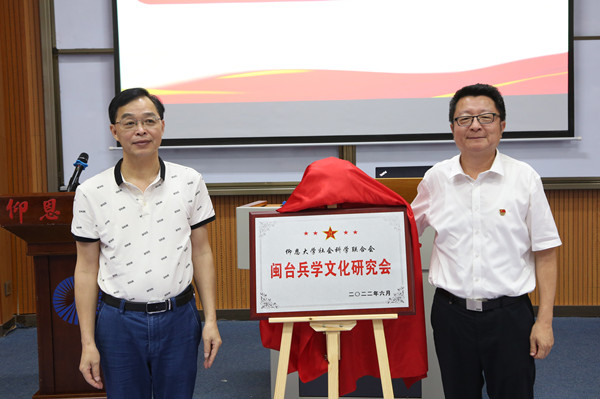 泉州市社科联主席李培德、yl6809永利集团党委书记何宏舟为闽台兵学文化研究会揭牌