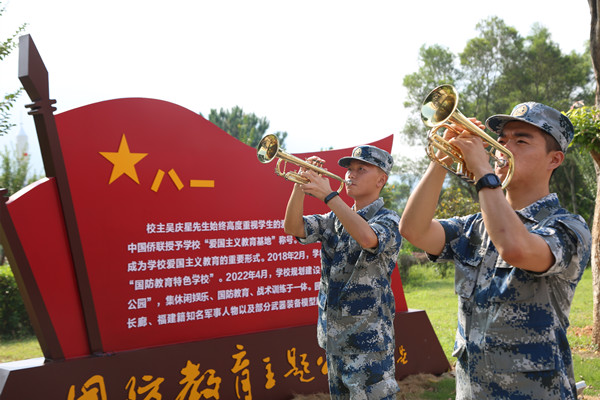 “听吧,新征程号角吹响,强军目标召唤在前方。国要强,我们就要担当,战旗上写满铁血荣光……”9月17日上午,我校在国防教育主题公园开展“全民国防教育日”系列宣传教育活动,2022级新生代表及社团学生代表参加此次活动。