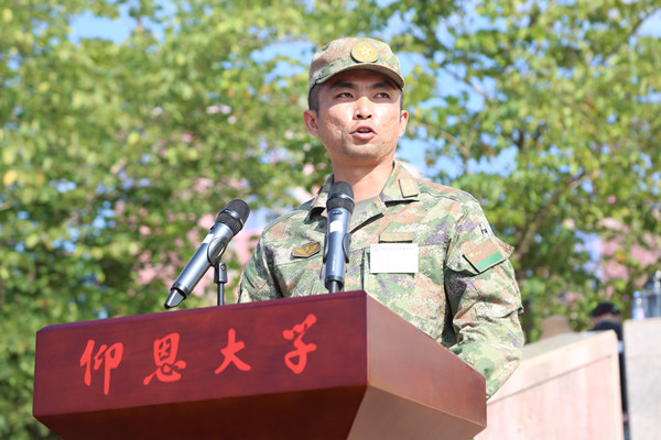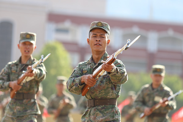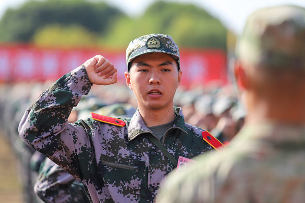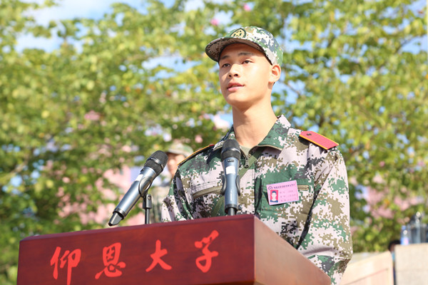 新生代表邱凯盟在讲话中表示,将以军人的标准严格要求自己,绝对服从命令,一切行动听指挥,认真学习各项军事技能,坚实基本功,磨练意志力,塑造自己优良的品格和生活作风,为实现中华民族伟大复兴的中国梦贡献青春和力量。