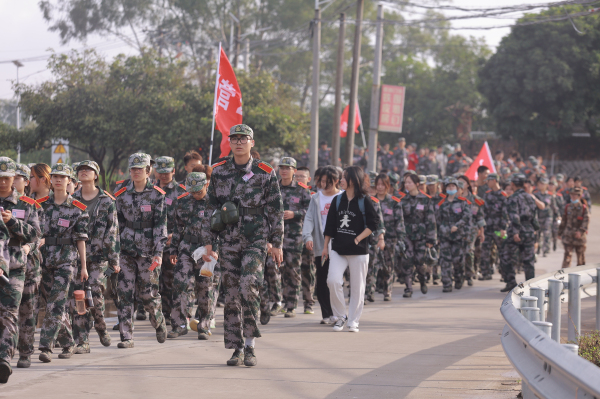 11月26日上午7时许,2022级新生按照军训团预定计划,整装出发,浩浩荡荡开启18公里拉练征程。校党委副书记程如平、校武装部部长薛军楼、学生事务部主任吴胜潮及各学院党总支书记、新生辅导员等共同参加了此次拉练。