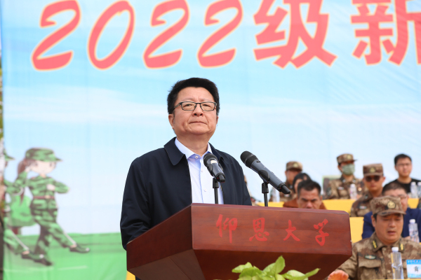 校党委书记何宏舟代表学校向承训部队的教官们致以崇高的敬意,向为本次军训提供大力支持的洛江区医院等单位、全体学生管理人员和后勤保障人员表示感谢,向圆满完成军训任务的新生表示祝贺。他表示,大学生军训是贯彻习近平强军思想,全面落实党的教育方针,培养德智体美劳全面发展高质量人才的重要举措。学校历来高度重视爱国主义教育,注重培养学生的家国情怀和责任担当,将国防教育作为立德树人的根本任务常抓不懈,在学生军事技能训练、大学生征兵、军民融合发展等方面成绩突出,硕果频结。他希望同学们在今后的学习生活中始终铭记这段短暂却珍贵的经历,巩固和发扬军训中形成的爱拼、团结、守纪的作风,脚踏实地、百折不挠的精神,学会敢于面对困难挫折,勇于接受挑战,勤奋学习,积极进取,做理想远大、热爱祖国的好青年,做追求真理、勇于创新的好青年,做德才兼备、知行合一的好青年,做有理想、敢担当、能吃苦、肯奋斗的新时代好青年。
