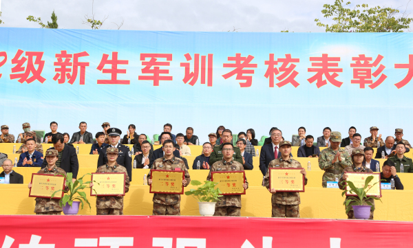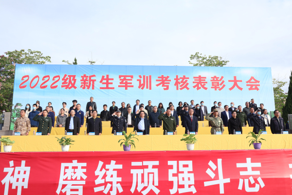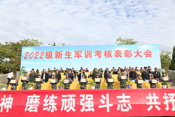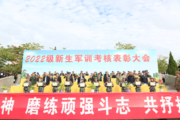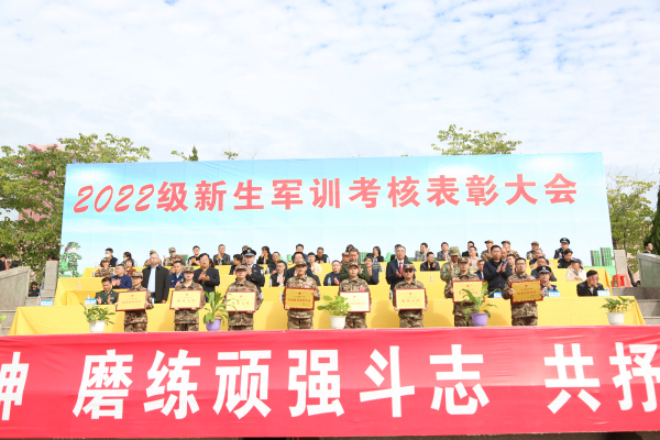大会宣读《关于2022级新生军训先进个人和集体的表彰决定》,对在军训中表现突出的集体和个人进行表彰。管理学院、法学院、艺术与教育学院荣获军训优秀组织单位;经济学院、工程技术学院、管理学院获优秀方阵,人文学院、会计学院分别获评养成教育优胜单位、精神风貌优胜单位;人文学院等单位在首届军歌合唱比赛中获奖;张燕香等学生荣获2022级新生军训“木兰杯”荣誉称号;刘子铭等学生荣获2022级新生军训“勇士杯”荣誉称号;林嘉豪等12名教职工获军训综合保障先进个人;范灵璇等共12组学生在第六届“爱我国防”演讲比赛中获奖;张碧琴等共510名学生获新生军训标兵;林勇康等共160名学生获新生军训单项考核优胜个人。