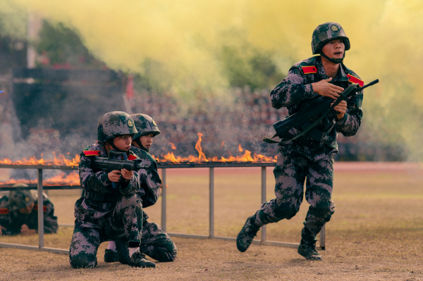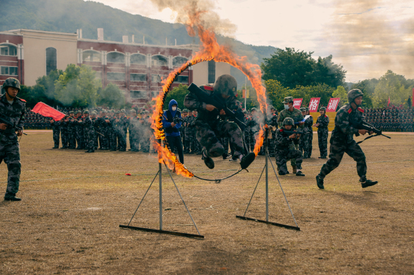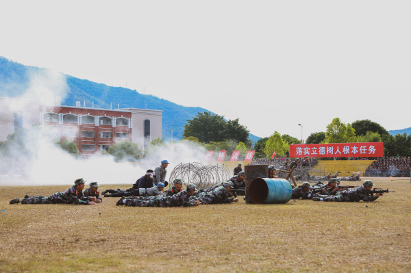 此次军训考核验收分“阅兵式和分列式”“yl6809永利集团军事五项考核”“养成教育旗语操”“雏鹰反恐应急分队新队员入队考核”“经典作战演练(八路军夜袭阳明堡)”“军体拳和匕首操”等六项内容,新生们身形矫健,拳脚敏捷,喊声震天,气势十足,展示了两周来的刻苦训练成果,过硬的军事技能本领、临危不乱的强大心理素质和军人优良作风。