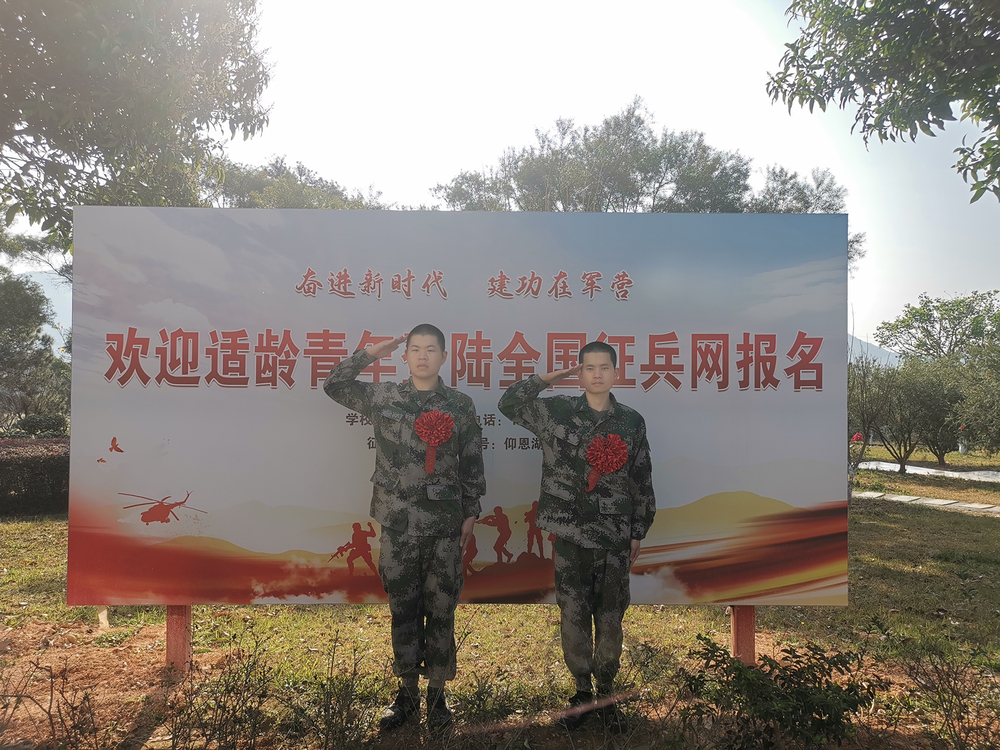 这对兄弟俩,哥哥名叫林庆泉,是我校2019级金融学专业的毕业班学生,弟弟林福炳,是2019级英语专业的毕业班学生。他们对军营生活都向往已久,渴望能在部队这个大熔炉里报国成才,淬炼一身本领和坚强意志品质,用青春去守护祖国广袤的山河。