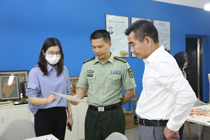 洛江区人民武装部政委刘新灵一行参观软木画工作室