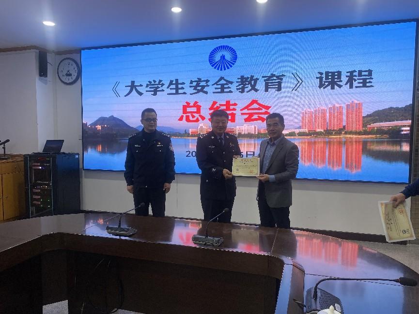 泉州市公安局公共关系处处长、法制与安全教研室主任林江涛代表《大学生安全教育》课程组做总结。他表示,《大学生安全教育》课程是在“警校共建”框架下开展系列活动的其中一项,有力推动学校和公安部门群策群力抓好大学生安全工作。共建活动开展8年来,学校持续推进大学生的安全教育工作,做到让学生平平安安来,平平安安毕业,让学生开心,让家长放心。他听了授课教师的总结发言后,表示,授课教师都是各单位推荐的骨干力量,要珍惜来校授课的机会,这既是责任,也是一个使命,更是一份荣誉随后,他从课程建设和学生管理两个方面,提出要求,希望全体授课教师,能按照学校教学管理规定,严格遵守严格落实,确确实实把课程建设好,做一名知识传递者、引路者、管理者。